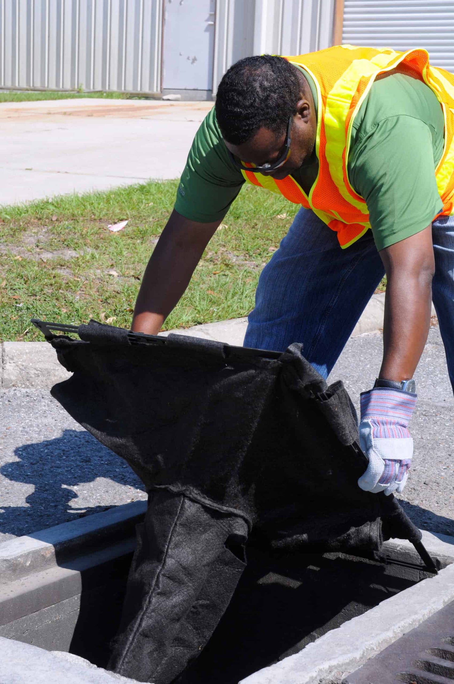 - Adjustable catch basin insert quickly re-sizes to fit almost any storm drain – no trimming of excess fabric required.