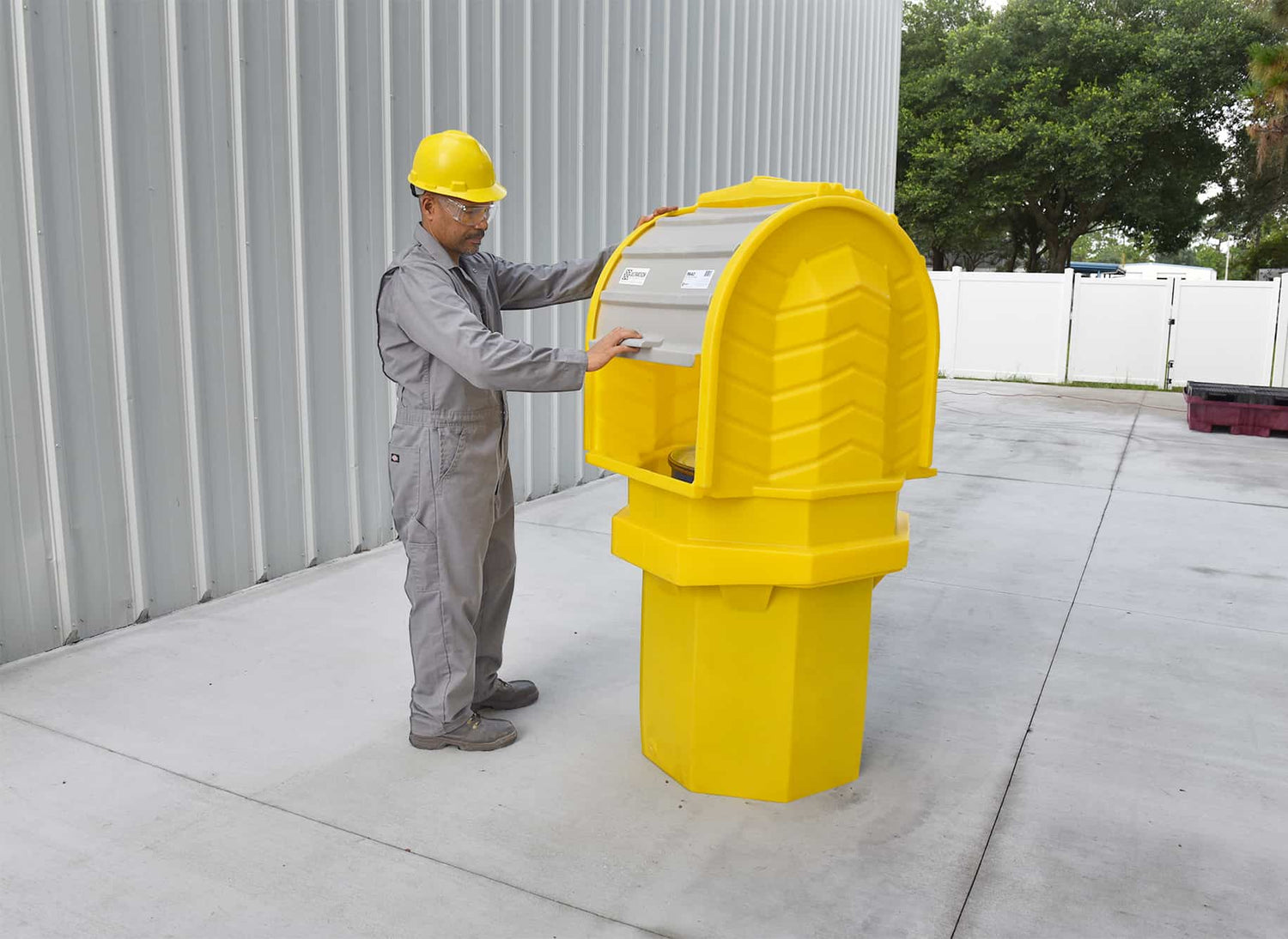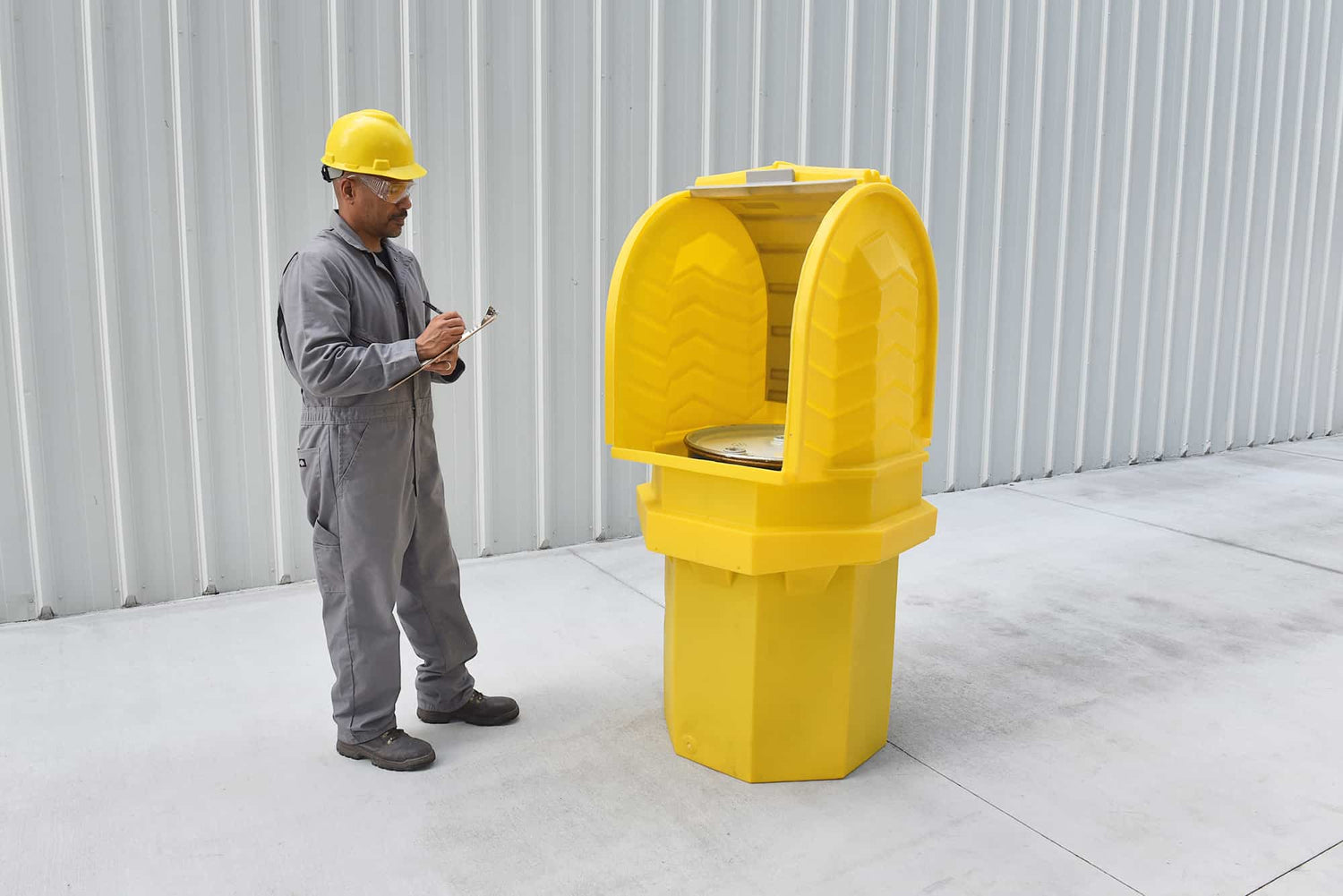 • Two-piece spill containment unit provides safe and secure outdoor storage for your 55-gallon drum.