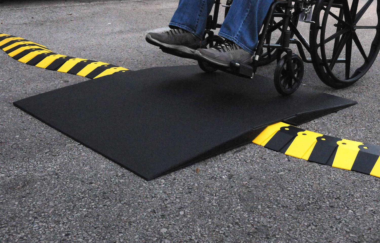 Description: The Ultra-Sidewinder Cable Protection System is an innovative new solution for protecting cables run across a floor. The new design articulates left and right—allowing the system to turn corners and adapt to the layout of the room while maintaining full protection for the cables and trip protection for pedestrians. Cables can be left in the system for the ultimate in portability, or left in place indefinitely. There is no longer a compromise between safety and flexibility.