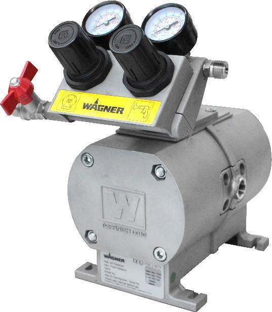 Description: The WAGNER TOPFINISH DD10 is the first air-operated double diaphragm pump that guarantees high-quality surfaces without the use of a material pressure regulator. This pump saves up to 70% solvent in clean-up.