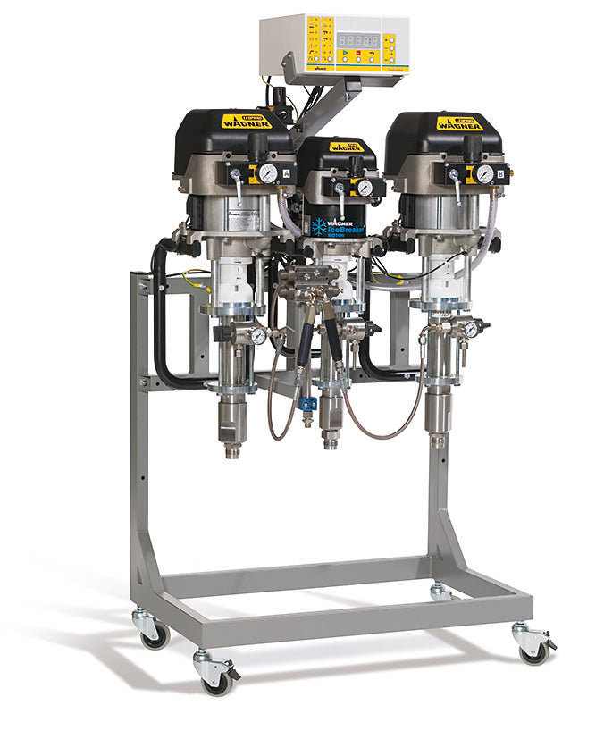 TwinControl is perfect even for critical applications such as abrasive materials, reactive paints, high viscosity materials, and high delivery rates. The special software prevents off-ratio spraying and controls all working parameters to ensure a consistent and precise mixing quality